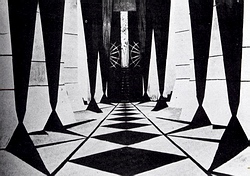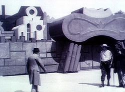 Igen erőteljes a díszletek hangsúlyos szerepe, mely nem embereket és tárgyakat