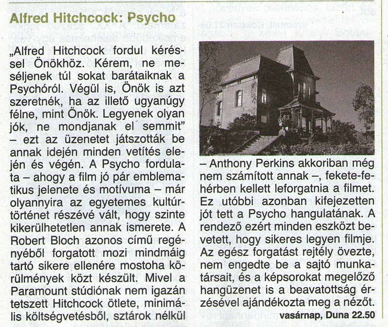 DunaMozi - 115 éve született Alfred Hitchcock - Psycho - (SzínesRTV, 2014.júl.20.) [Vissza a Hitchcock kezdõoldalra!]