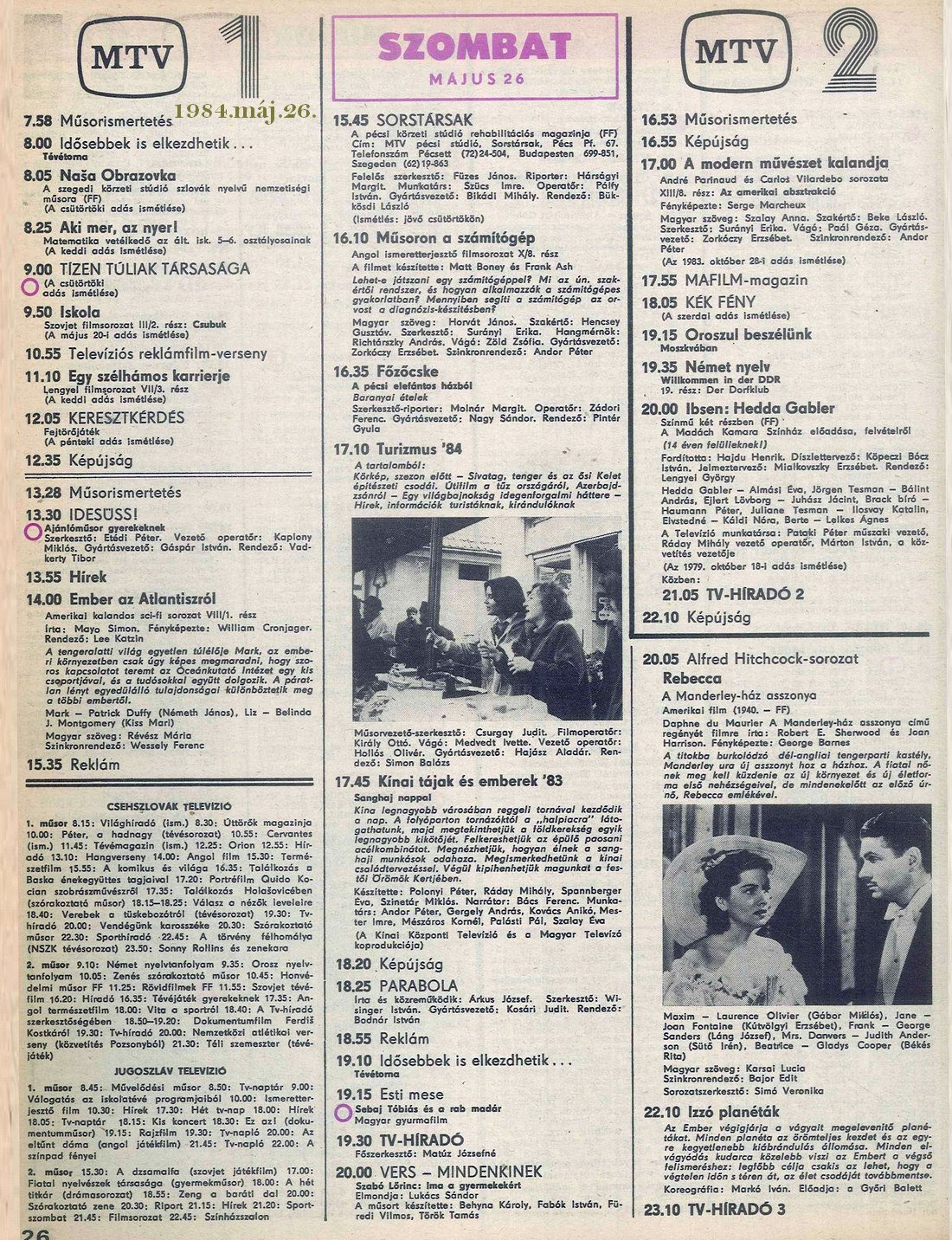(MRT - rádió- és televízió újság, 1980-as évekbeli számaiból) [Vissza a Hitchcock kezdőoldalra!]