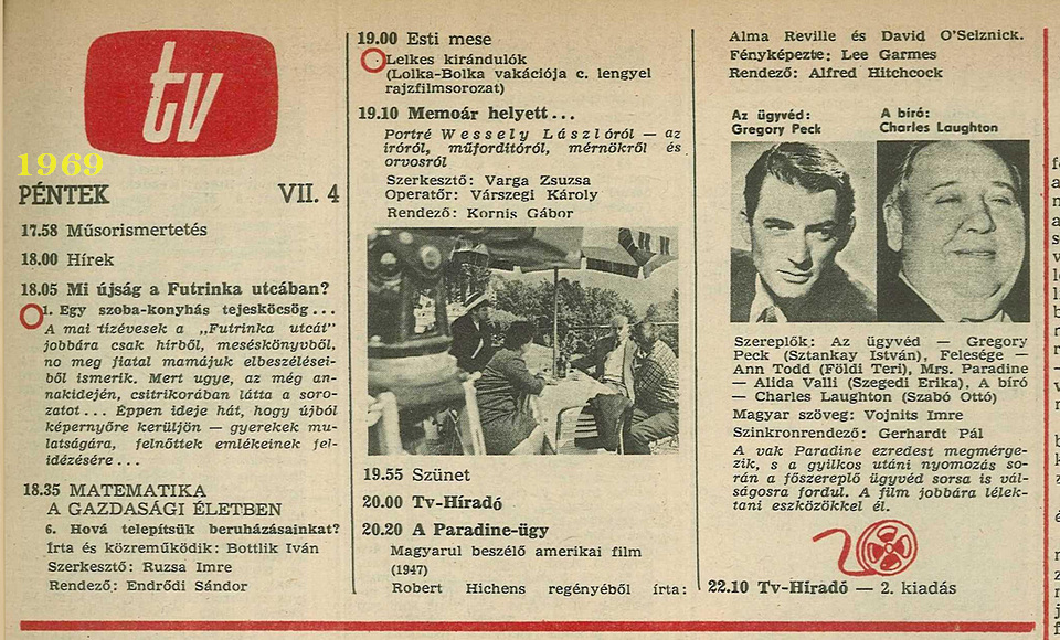 (MRT - rádió- és televízió újság, 1970-es évekbeli számaiból) [Vissza a Hitchcock kezdőoldalra!]