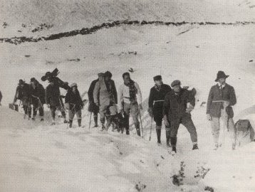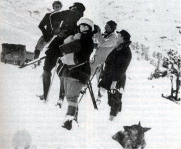 Hitchcock egy korai produkciós fényképen: rendez - mögötte jobbra, Alma Reville - jövendőbeli felesége