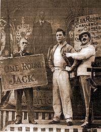 annak a bokszolónak a standjánál, akit Carl Brisson játszik és akit "One