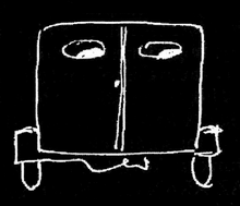varrnak, az elöl ülő két alakot, a vezetőt és a kísérőt lehet látni az ablakon