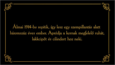The Three-Hundred-Year-Old Man is the reconstruction of a lost silent film made in 1914 on the basis of an album of 66 photographs kept in the Film Archive. The 50-minute silent film was made to raise money for charity: the aristocratic group initiating the making of the film exploited the popular medium of film to promote a new achievement, aviation. The screenplay was written by Sándor Bródy and Endre Nagy, its actors were young Hungarian aristocrats, many of whom later became notable personalities. Money raised from the film was to go to improve Hungarian aviation and the Polyclinic.