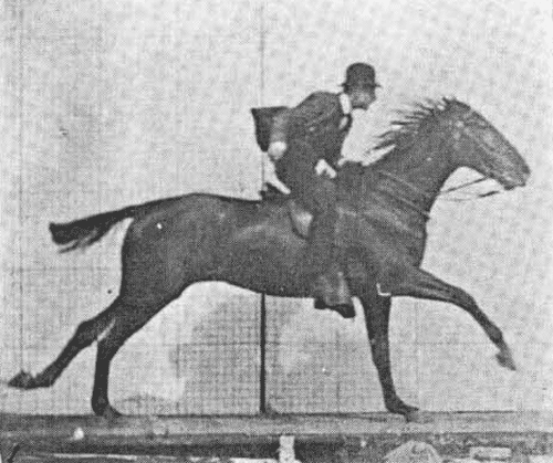 1878-ban, Stanford ismételt anyagi támogatásával Muybridge tizenkét kamerát állított egymás mellé, amelyek egymástól eltérő időben exponáltak, amikor a vágtató ló az adott kamera előtt haladt el (az exponálást a pályán elhelyezett vezetékek elektromos úton indították). A felvételek készítésének pontos idejét egy kronográf ezredmásodperces pontossággal mérte. A fotóknak köszönhetően kiderült, hogy ló mind a négy lába akkor van levegőben, amikor maga alá húzza, és nem amikor kinyújtja. A Stanforddal való szakítás után lehetséges támogatókat keresett munkája folytatásához. Erre a Pennsylvania Egyetem vállalkozott, akik laboratóriumot és felszerelést biztosítottak számára az egyetem területén. 1884 és 1886 között 781 sorozatképet készített. Ez a munkája 1887-ben tizenegy kötetben jelent meg Animal Locomotion címmel (több mint húszezer felvétellel), mozgó emberekről és állatokról. A modellek többsége férfi volt, többnyire a Pennsylvania Egyetem hallgatói, akik az általuk bemutatott sportágban (birkózás, futás, súlylökés, távolugrás, baseball, vívás, stb) kiemelkedő eredményt értek el. A nők művészek modelljei voltak. Több sorozatképet egyszerre két vagy három nézőpontból rögzített.