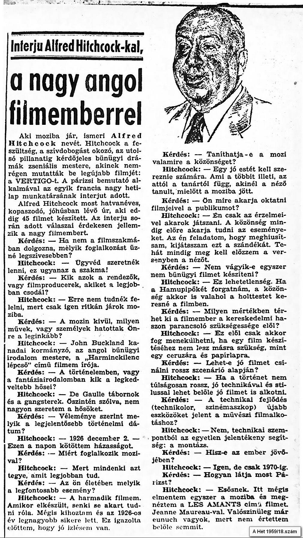 (A Hét - izraeli magyar hetilap - , 1959/18.szám) Köszönet a cikkért Cs.Sándor-nak! :) [Vissza a Hitchcock kezdőoldalra!]
