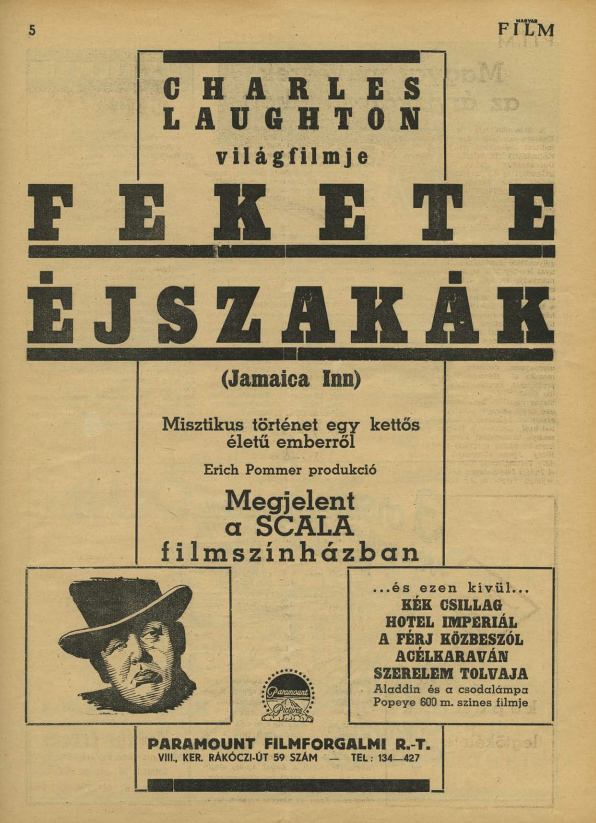 Jamaica Inn - Fekete éjszakák - 1939 - (Magyar Film, 1940/17. II.évf./17.szám, 5.oldal -1940.ápr.27.)