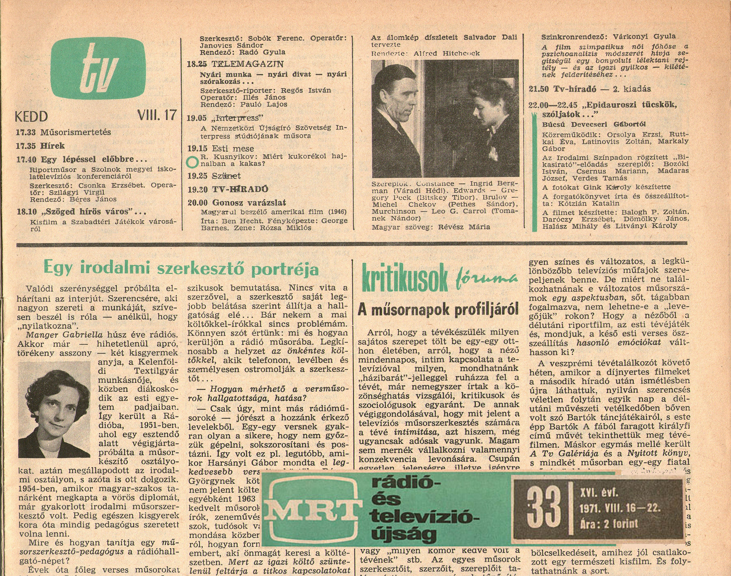 (MRT - rádió- és televízió újság, 1971.aug.16-22. (XVI.évf. / 33.) - 5.oldal)