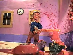hogy még a gonosz, kéjenc farkas-kománál is... Az élet apró baszogatásaitól megcsömörlött és véres ámokfutásba kezdő George gyurmaanimációja