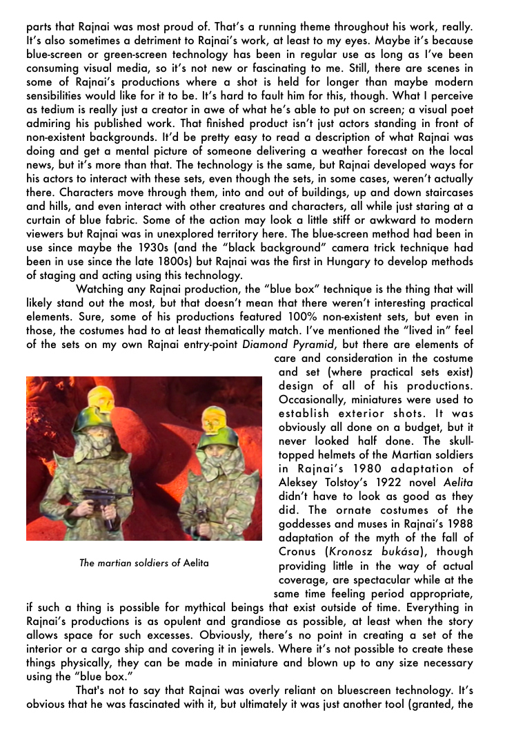 A kiadvány foglalkozik a Rendező életművével (teljes filmográfia!), ad egy bevezetőt a '70-'80-as évek magyar televíziózásába, közli Rajnai 'Elektronikus költészet és a sci-fi' c. tanulmányát 1972-ből. Nagyon szép, 30 oldalas (A/5) kiadvány!