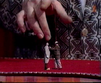 fehér háttér elé tették a szereplőt, ez egy magyar találmány, 1929-es magyar találmány. Fehér háttér elé