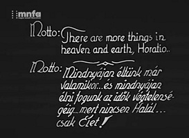 " ...Deutsch Richárd filmjének témája, amely a visegrádi vár udvarán játszódott. Deutsch filmjének története is figyelemre méltó. Ehhez hasonló misztikus témákat leginkább a húszas évek második felében vittek filmre. Magyarországon a legismertebb thriller-rendező Lajthay Károly volt, akinek sajátos rendezői stílusa kissé érezhető is Deutsch filmjének hangulatán, technikai megoldásain. Ugyancsak a némafilmkorszakot idézik a kettős expozíciók és a film főcíme, a mozgó hátteres feliratokkal. A film másik különlegessége, hogy a Holokauszt során elpusztult Deutsch Richárd elveszettnek hitt filmhagyatéka nemrégiben került elő. A háború alatt földbe ásva pihent, majd évtizedekig hevert egy budai ház padlásán, melynek bontásakor bukkantak rá véletlenül. A filmek egy része elázott a földben, de ami megmaradt, az páratlan dokumentuma a magyar amatőrfilm-történetnek." Rendezte: Deutch Richard |